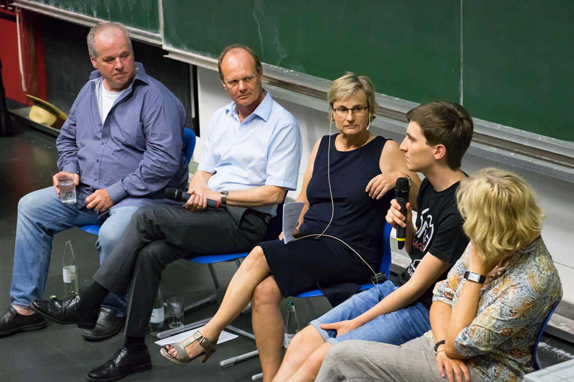 Historischer Abriss und anschließende Podiumsdiskussion mit Prof. Dr. Michael Weber (Präsident Uni Ulm), Julian Aicher (Neffe der Geschwister Scholl), Dr. Nicola Wenge (Leiterin DZOK) und Sven Fauth (FCLR).