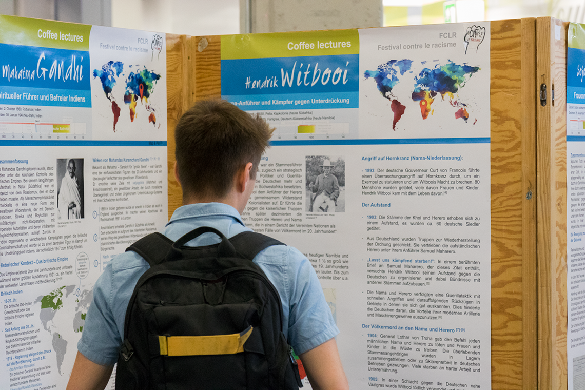 Wir, die Organisationsgruppe des festival contre le racisme, wollen dieses Jahr einigen dieser unbekannten Menschen, die sich gegen Rassismus und menschenverachtende Einstellungen auflehnten und auflehnen, ein Gesicht geben. Wir reisen dabei durch die Zeit und beschäftigen uns mit dem Kolonialismus.